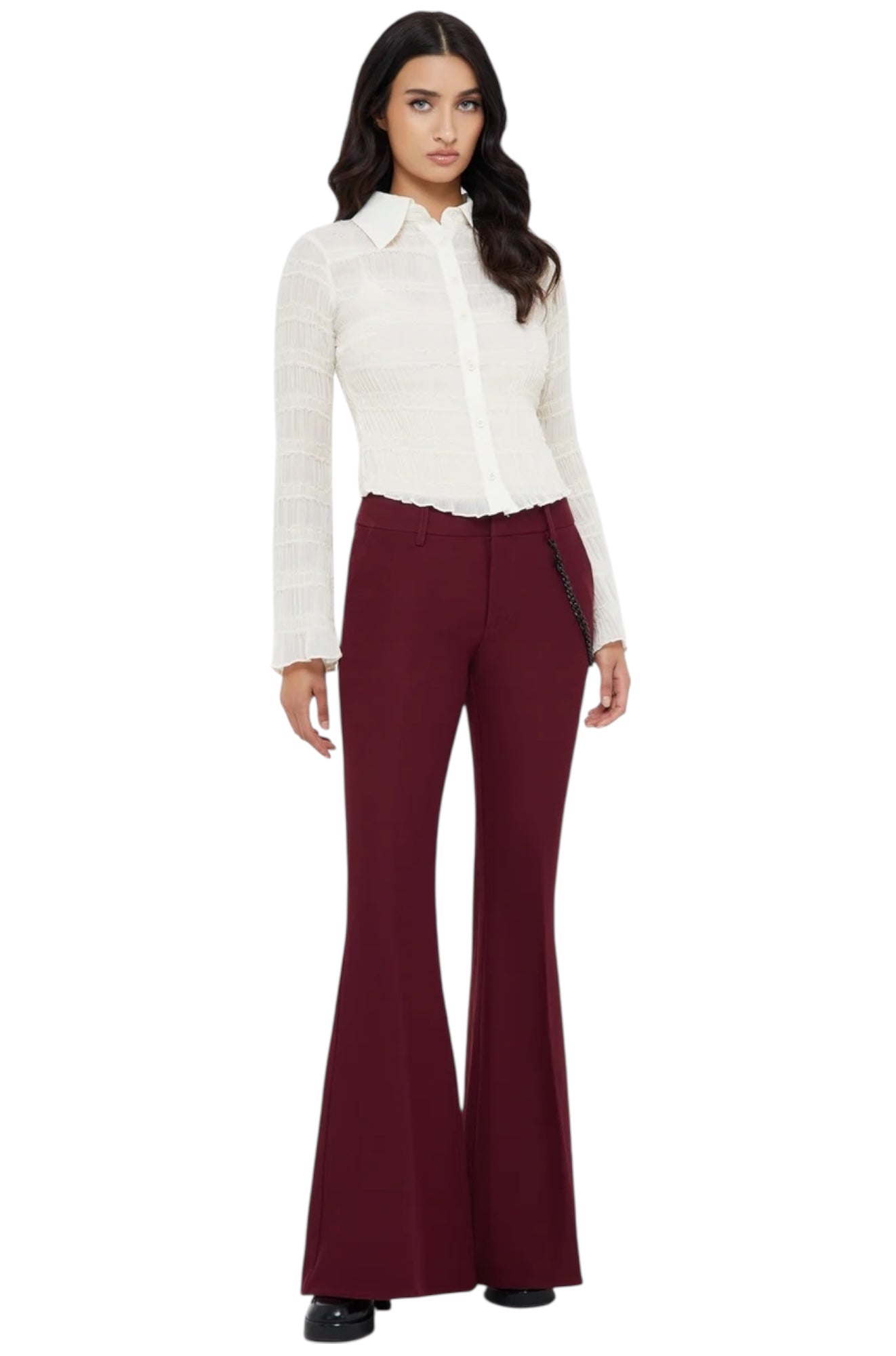 Turn heads in the Killstar Vile Vixen Flare, crafted from premium twill suiting fabric with just the right amount of stretch for all-day comfort. Featuring a classic tailored closure, functional front pockets, and a removable belt chain with the signature Killstar “K” charm, these fiery red flares are equal parts bold and timeless. Designed in Brighton, England, this mid-rise silhouette with belt loops and sharp tailoring is the must-have statement piece to spice up your wardrobe all year long.