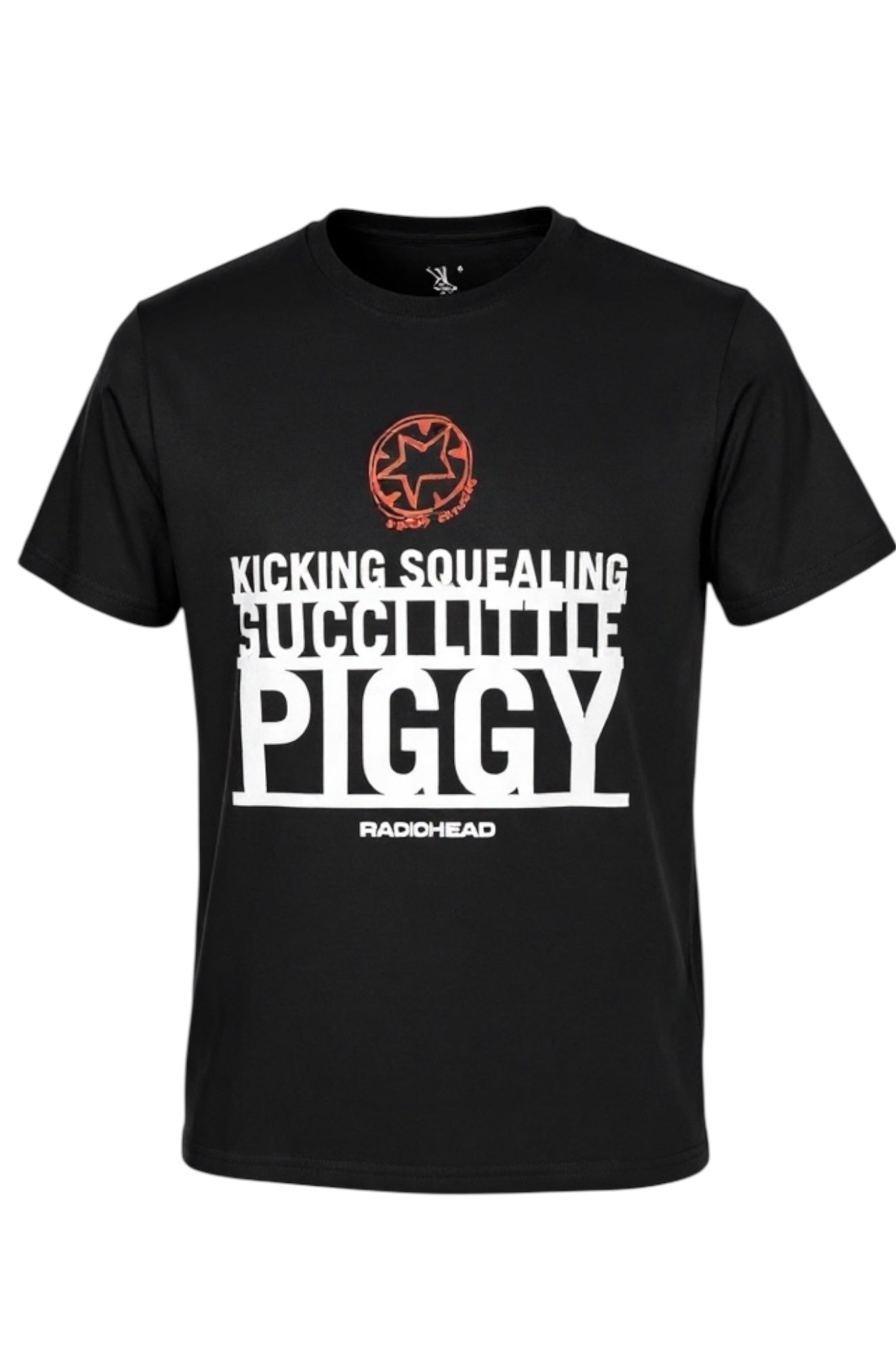 • Front: “Kicking Squealing Gucci Little Piggy” text + Radiohead logo
