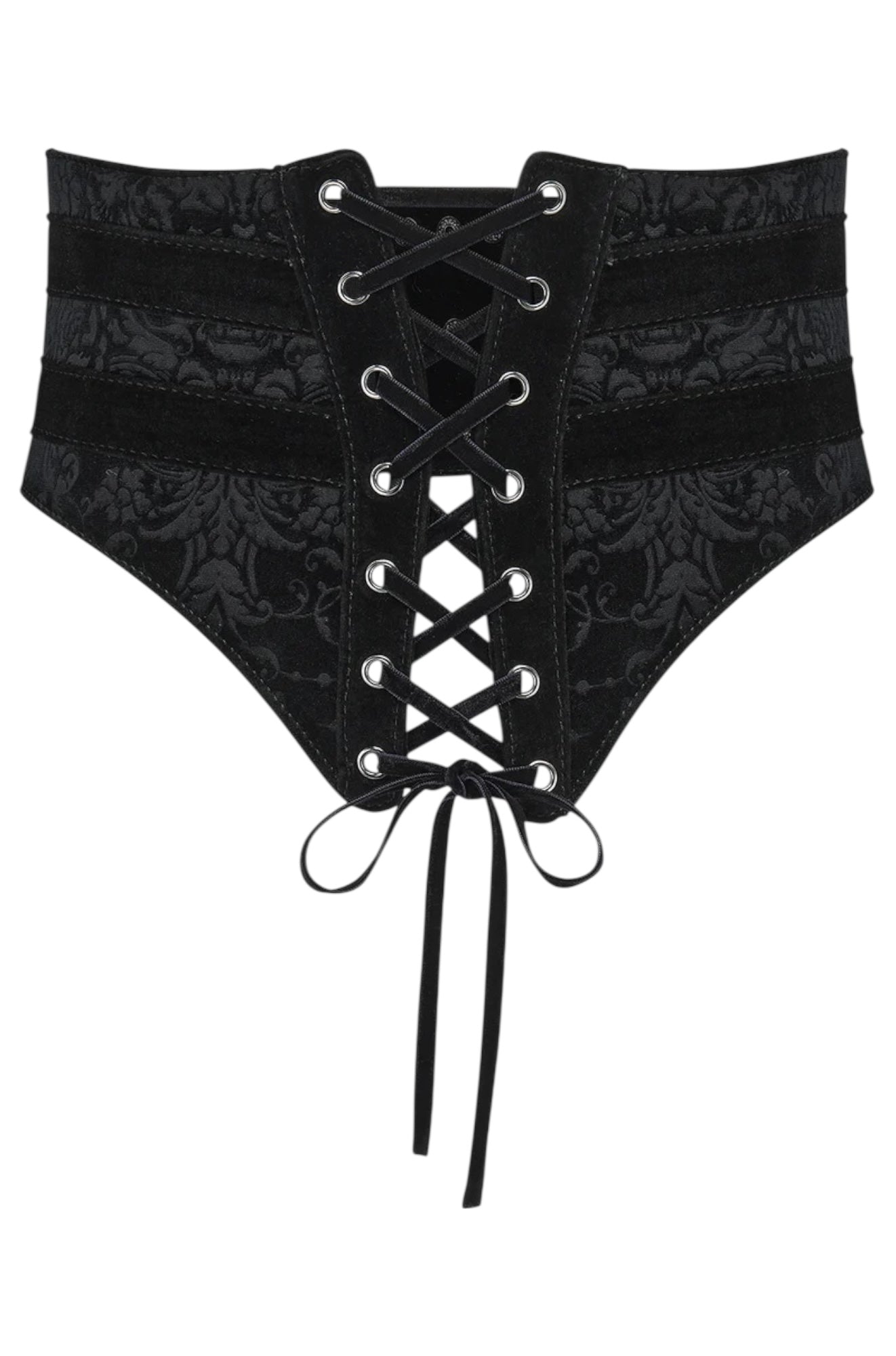 Unveil your dark romance with the Killstar Spectral Lover Waist Belt. Crafted from soft-touch, premium embossed velvet with the signature KILLSTAR Fiend print, this statement belt cinches your silhouette with gothic allure. The shaped front lace-up panel, detailed with metal eyelets and a double-sided velvet ribbon, adds dramatic structure and edge. Finished with a secure back popper fastening and elasticated panels for comfort and fit. Designed in Brighton, England—perfect for layering over dresses or tops to elevate any dark ensemble.